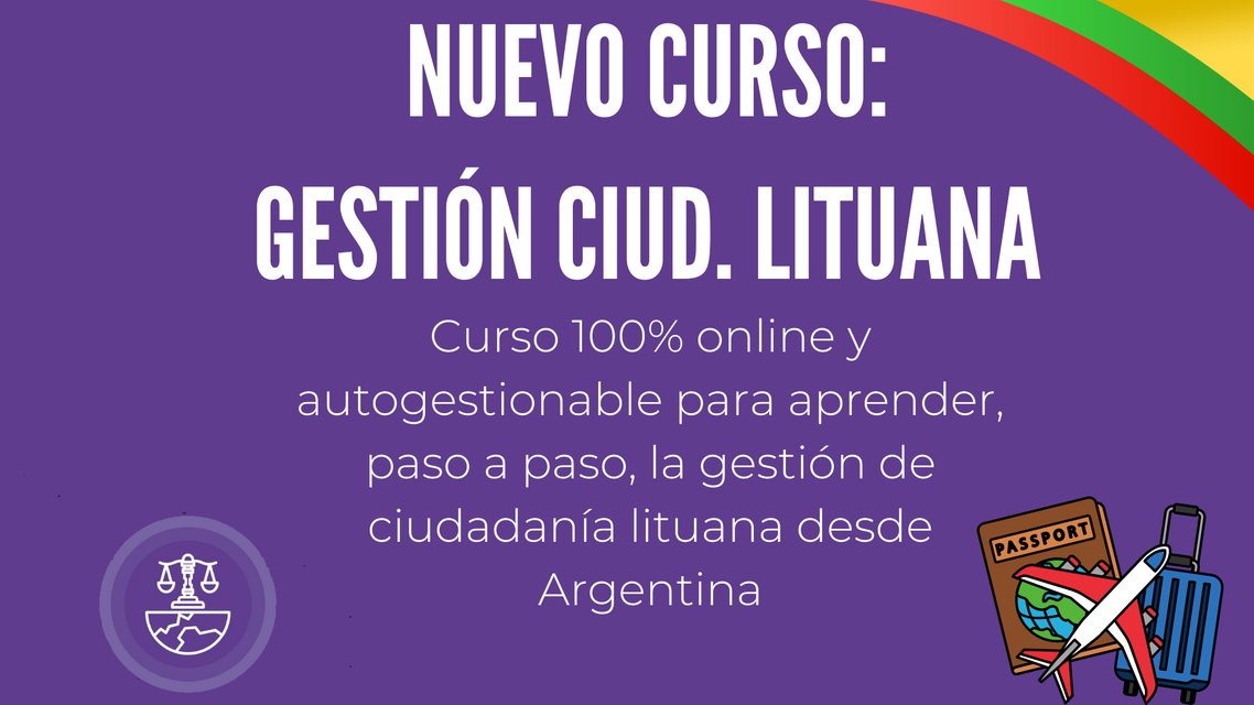 Capacitación 100% online y autogestionable para aprender a gestionar un caso de ciudadanía lituana de punta a punta: diagnóstico y elegibilidad, armado de carpeta documental, actas/archivos, apostillas y traducciones, MIGRIS, turnos por misiones consulares en Argentina, seguimiento y subsanaciones.